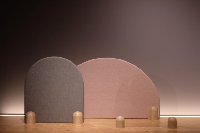 メインモデルとなる「ACカーム」は、空間との調和をめざした飛沫防⽌用パーテーションで、ベースには木材(アッシュ)を使用し、パネルにはアクリルとファブリック調ビニールレザーの2種類を用意した。ビニールレザーは、耐次亜塩素酸、耐アルコール、抗菌機能を備える。2万9000円〜。