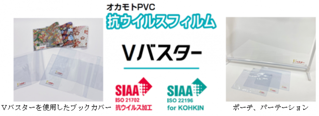 オカモト(東京都文京区)は、一般社団法人抗菌製品技術協議会(SIAA、東京都新宿区)の抗ウイルスSIAAマークを取得したPVCフィルム『Vバスター』を今年11月に発売する。抗ウイルス/抗菌性能基準に適合し、フィルム表面に付着した特定ウイルス(エンベロープを持つウイルス)の繁殖や、大腸菌、黄色ブドウ球菌の増殖割合を100分の1以下に抑制するもの。