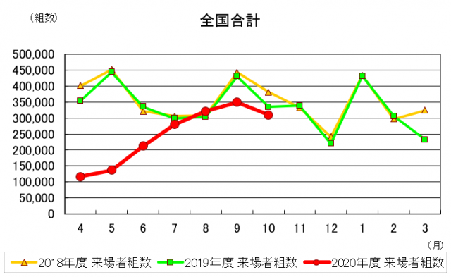 各エリアの来場者組数及び前年対比は以下の通り。カッコ( )内は対前年同月比を表す。