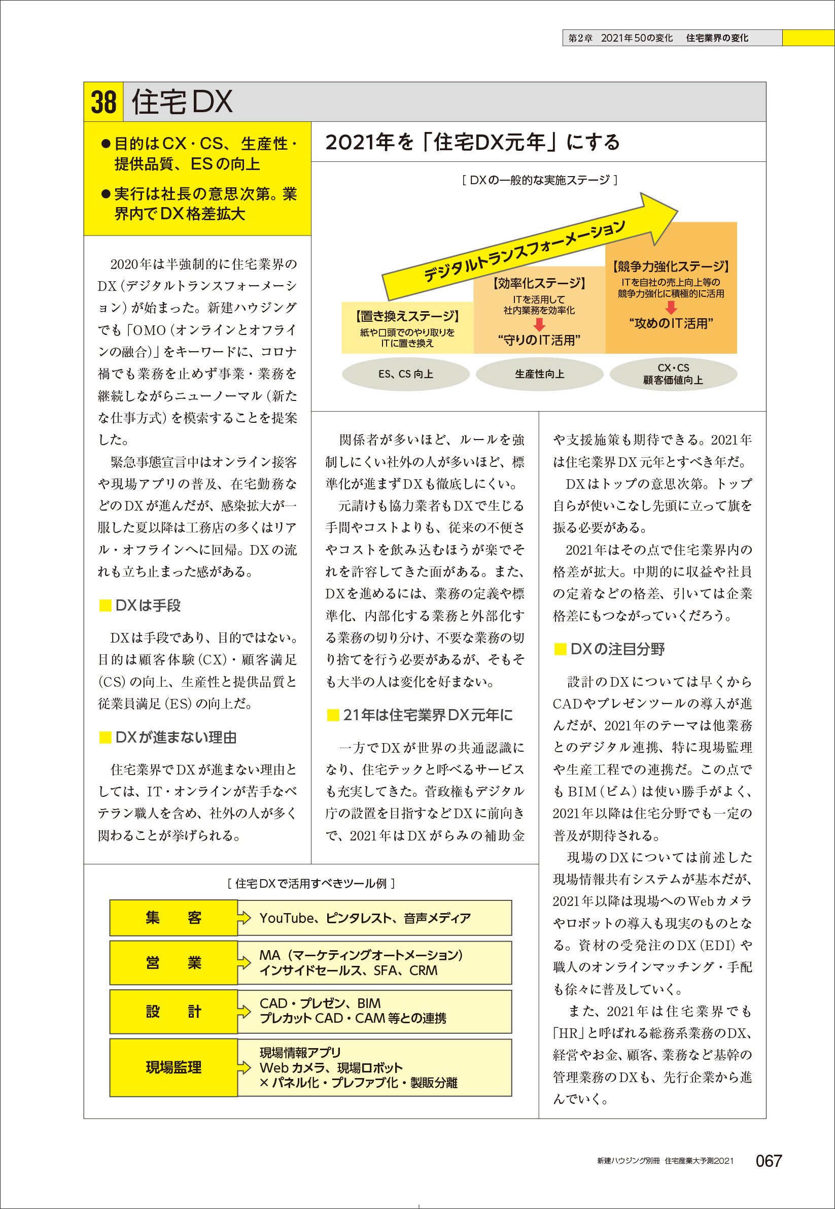 「住宅産業大予測」は工務店の応援紙「新建ハウジング」が工務店を中心とする地域の住宅産業の目線に特化して 2021年の住宅市場と住宅産業について解説する人気シリーズのムック本です。