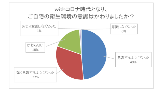 “withコロナ時代”という言葉が生まれた今年、自宅の衛生環境への意識が変わったか聞いたところ、8割超の人が「強く意識するようになった」「意識するようになった」と回答した。