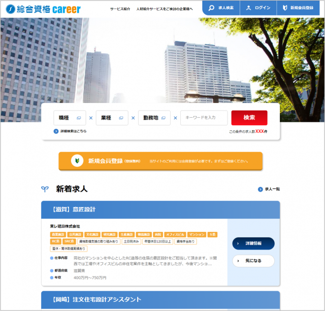 総合資格学院を運営する総合資格(東京都新宿区)は12月15日、社会人向けの建設特化型転職・求人サイト「総合資格career」をオープンした。