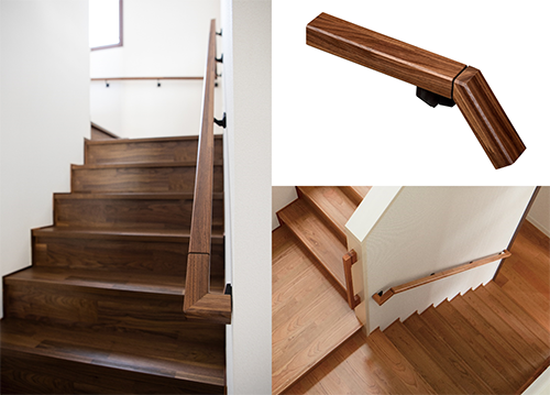 朝日ウッドテック(大阪市)はこのほど、内装建材シリーズ「LiveNaturalプレミアム AndMore」に、新たに「銘木無垢手摺(壁付けプレカット手摺)」をラインアップした。