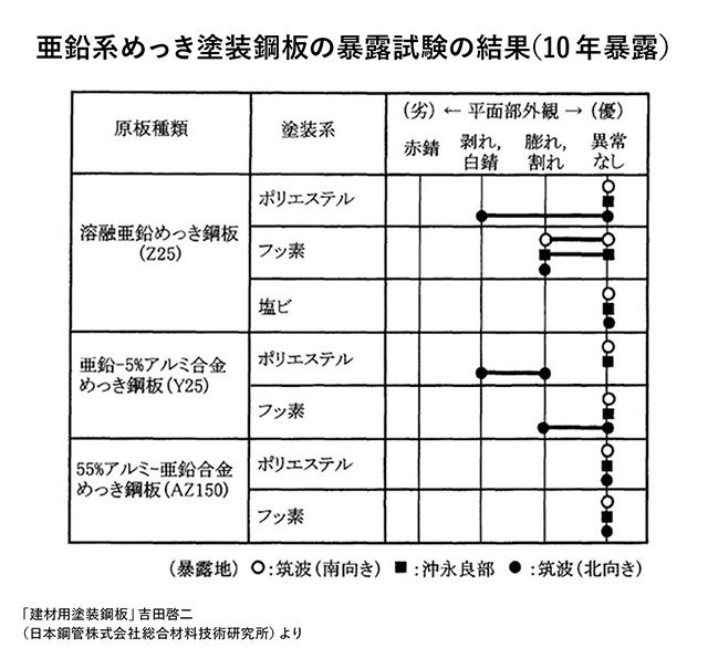 鋼板は0.35〜0.4mmという非常に薄い素材のなかにめっきや塗装を組み込み、性能を確保している。材料の種類も多く、劣化のメカニズムについても知られていない部分が多いため、まずは材料の基礎知識から紹介する。(取材・文:大菅力)