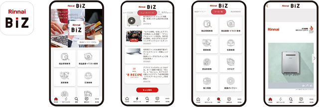 スマートフォン専用アプリも公開されており、自宅や外出先からいつでも商品情報検索やカタログ情報などを活用、チェック可能。また、LINEの友達登録により、給湯器の買替検索や在庫検索などのサポートを受けることもできる。メール「Rinnai BiZ Mail(リンナイビズメール)」では、キャンペーン情報やコンテンツ更新など、同サイトの最新情報が確認できる。