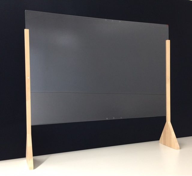 東洋額装(広島県福山市)では、新型コロナウイルス対策として、パーティションを表装の技術を応用してオーダーメイドで製作・販売している。
