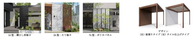 「ウォール」は、アルミ乾式構造で、「板張りタイプ」と「タイル仕上げタイプ」の2デザインから選べる。高さは3種類。