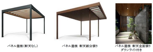 「ルーフ」はパネル屋根に軒天を組み合わせたり、パネル屋根下にサンシェードカーテンを組み合わせることもできる