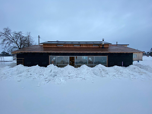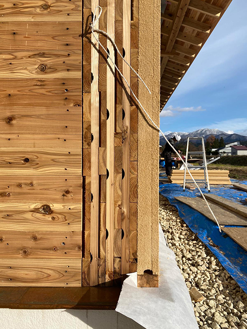 日本モデルハウス第一号の「秋田もるくす建築社美郷アトリエ」の1月なかば建設現場の写真です。雪の中でも少しずつ進んでいます。3月末か4月頭には完成の予定です。