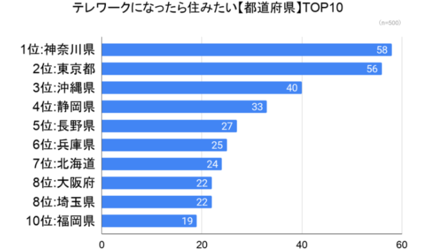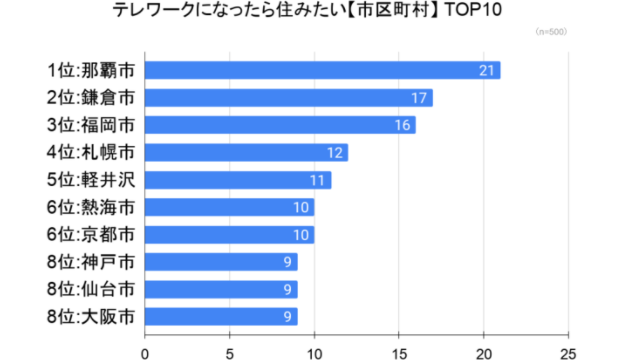 AlbaLink(東京都江東区)はこのほど、全国の男女500人を対象に「テレワークになったら住んでみたい街ランキング調査」を実施し、その結果を発表した。