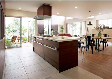 新製品では、人造大理石製ワークトップとステンレスワークトップを標準設定として同一価格で選択できるほか、これまでオプション設定だったシルバー色のレンジフードや加熱機器、エコハンドル付の水栓、高機能ステンレスシンクを標準設定とした。