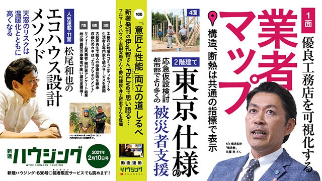 新建ハウジング2月10日号のトップ記事は、全国の優良工務店を可視化するとして、構造塾が公開している「家づくり応援・業者マップ」にフォーカスしました。その目的や、住宅(工務店)業界に及ぼす影響などを紹介しています。