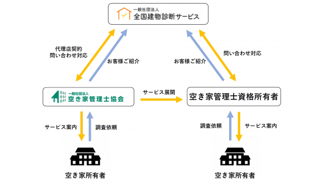 2者は、空き家管理業務に関する専門知識や法令の知識を持った「空き家管理士」と、全国建物診断サービスの「火災保険調査士」による建物診断や予防修繕の経験を合わせることで、保険利用者の増加も含め、空き家問題の解決を進めていくとしている。