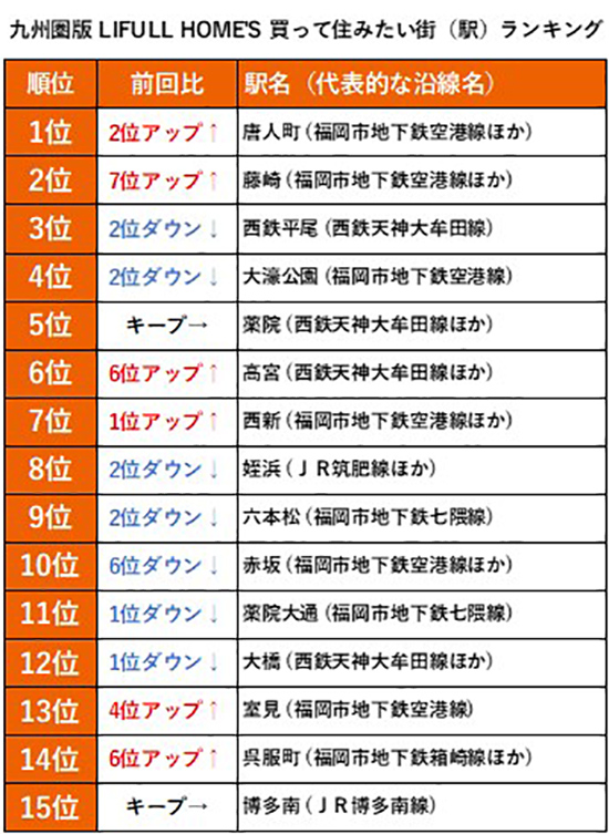 九州圏版では、前回3位の「唐人町」がトップに。前回9位の「藤崎」が2位、前回1位の「西鉄平尾」が3位と、ベスト15の顔ぶれに大きな変化はなかった。