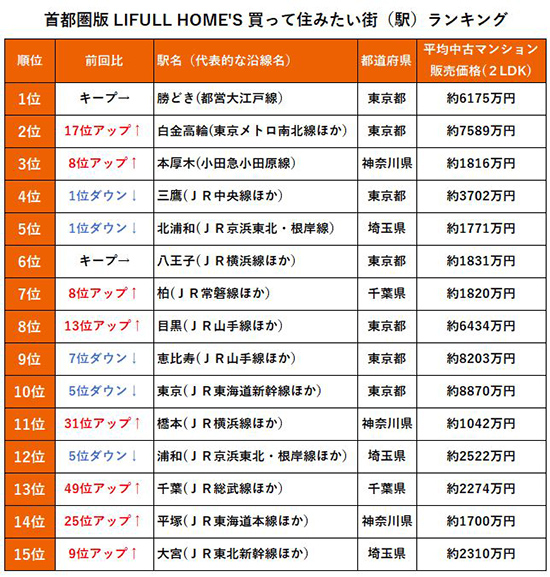 「首都圏版 買って住みたい街」のトップは「勝どき」、2位「白金高輪」、3位「本厚木」となった。「勝どき」は昨年に続き2年連続で1位を獲得。2019年は16位だったことから、東京五輪選手村跡地の開発がその動向も含めて高い注目を集めているとする。2位の「白金高輪」は、前回19位から大きくランクアップ。同様に前回210位から19位に急上昇した「牛込柳町」など、2020年に大型開発や道路整備事業で物件が多数分譲され話題になったエリアが上位に進出した。同社では、都心一等地の人気はコロナ禍でも衰えていないことが明らかとし、「コロナ収束後を想定し、利便性と資産性の高い都心周辺に買っておきたい、もしくはコロナ禍だからこそ、移動の少ない都心周辺で生活したい職住近接などのニーズによるもの」との分析をしている。