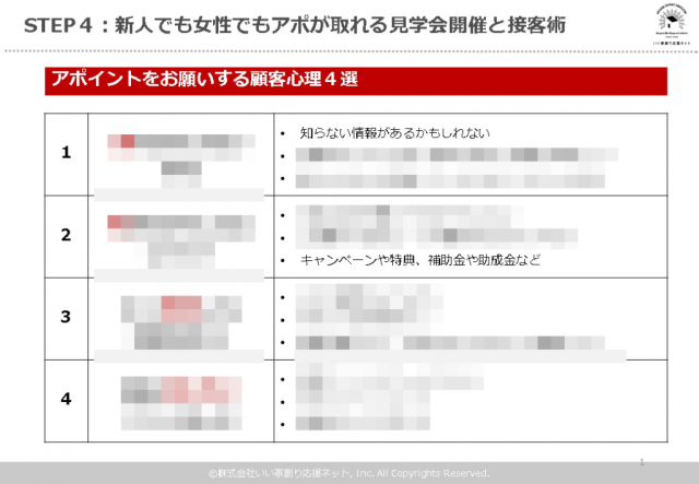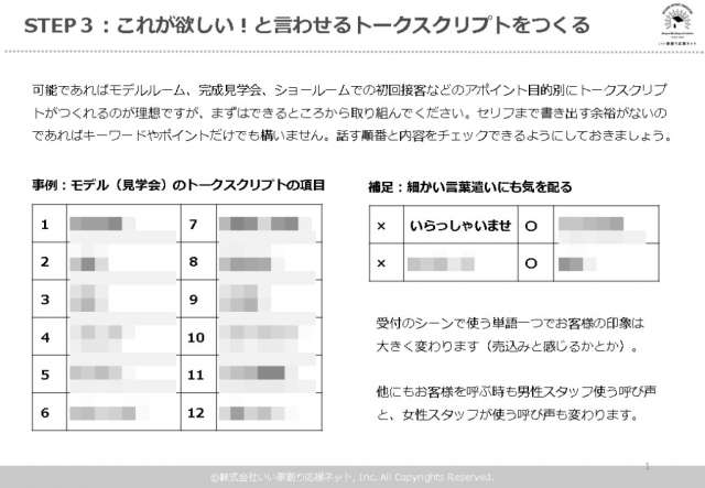 またさらに要望を聞きすぎる営業スタイルから、間取りが自由に変更できないことが逆にメリットになることを十分に説明ができるロジックを持っていません。