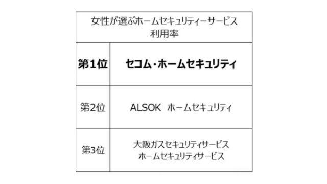 調査の結果、ホームセキュリティサービスの利用率トップ3は「セコム・ホームセキュリティ」、「ALSOK ホームセキュリティ」、「大阪ガスセキュリティサービス ホームセキュリティサービス」となった。