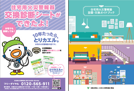 同工業会では、「コロナ禍で在宅時間が長い今こそ、自宅の住警器を交換する必要がないか確認してほしい」とし、消防庁が毎年行っている3月1日からの「春の火災予防運動」の期間に合わせて、住警器の交換の要否をチェックするための「住宅用火災警報器 交換診断シート」を「とりカエル特設サイト」内に用意した。同サイトから誰でもダウンロードできる。また、住警器の周辺情報について詳しく掲載した「設置・交換ガイドブック」も作成。ガイドブックは同工業会のホームページからダウンロードできる。
