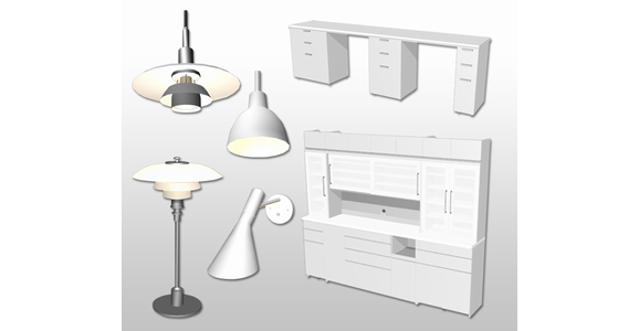 収録するブランドは、北欧照明の「ルイスポールセン」、収納家具の「パモウナ」。「ルイスポールセン」の照明器具20点と、「パモウナ」のキッチン収納や書斎机など16点を追加収録する。追加素材は、同社ホームページの無料のアップデータを適用することで追加できるほか、同社が運営するコンテンツライブラリー「データセンター」にも収録している。