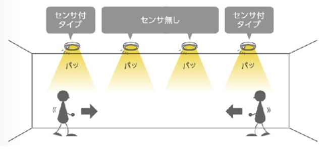 既存のダウンライトが付いていて電球型のランプが付いていれば、センサー付きのランプを装着することで簡単にセンサースイッチを導入することが可能です。
