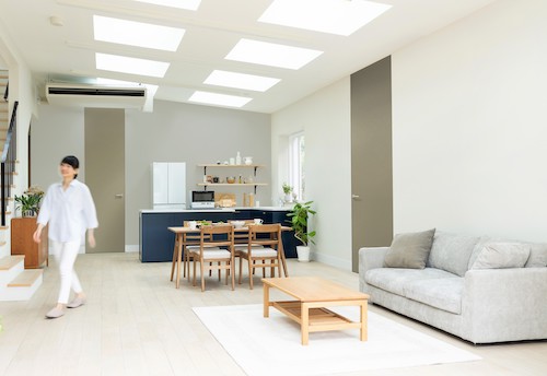 神谷コーポレーション湘南(神奈川県伊勢原市)は、天井高まである室内ドア「フルハイトドア」の新色としてトレンドカラーのグレーを追加した。