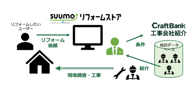 クラフトバンク(東京都新宿区)は、リクルート住まいカンパニー(東京都港区)が運営するリフォームECサイト「SUUMOリフォームストア」へサービスを導入すると発表した。