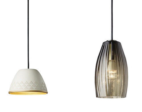 右:LED電球タイプは「菅原工芸硝子」のハンドメイドガラスを採用