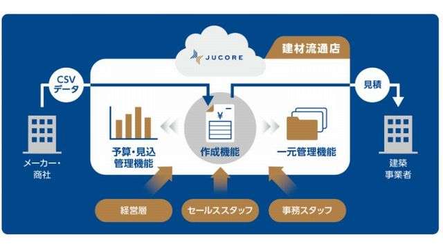 店舗には木材、金物、工具、電設資材など約3万点を揃え、プロユーザーがワンストップショッピングできるのが特徴。