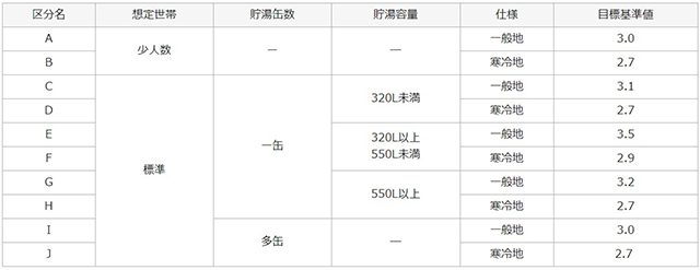 現行基準の36区分から、保温機能の区分統合、多缶区分の統合等を行い、新区分では10区分とした