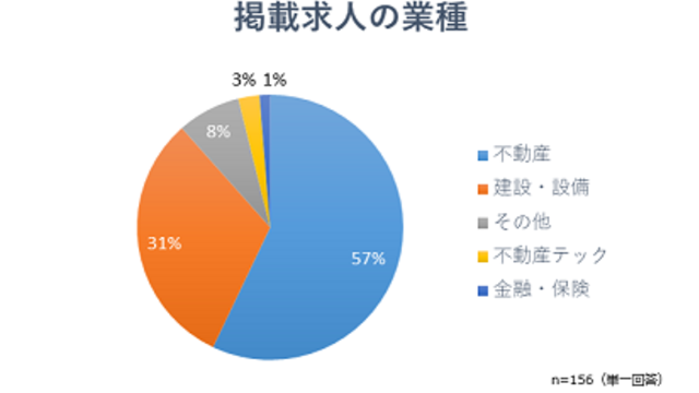 掲載求人の業種の割合は「不動産」が約6割、「建設」が約3割。具体的には仲介事業者での営業、建設現場での現場監督、設備設計など様々な求人が掲載されているという。