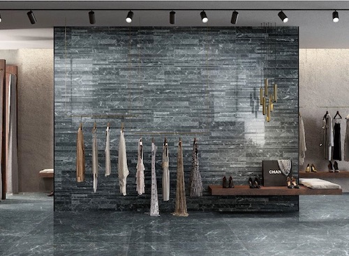 今回は、幅の異なる大理石柄ボーダータイル「スティーレマルミ」、オニキスなどの希少石を再現した「プレジャート」、アンティークなベネチアンガラスをミックスしたような「クランプルガラス」など12シリーズをラインアップした。