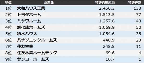 パテント・リザルト(東京都文京区)は、同社が独自に分類したハウスメーカー業界の企業を対象に、各社が保有する特許資産を質と量の両面から総合評価した「ハウスメーカー 特許資産規模ランキング2020」を発表した。