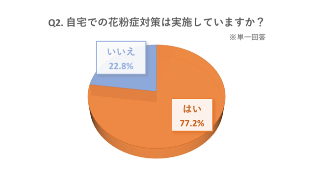 調査の結果、「自宅で花粉症対策を実施している」人は77.2%にのぼった。