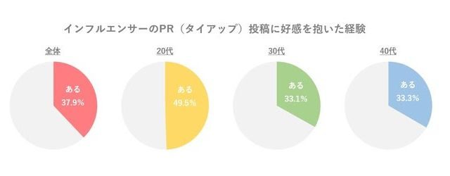 「インフルエンサーのPR(タイアップ)投稿に好感を抱いたことがある」と回答した人は37.9%。『PR投稿をしているインフルエンサーに対し、好感を抱くポイント』を聞いたところ、「PR投稿であることをわかりやすく伝えている」(66.4%)との回答が、他を大きく引き離してトップとなった。案件であることをしっかり明示しているインフルエンサーの方が、好意的に受け止められているようだ。同社では、この点は、フォロワーの態度変容にも影響を及ぼすとしている。他には、「他人の目を気にしない、正直な意見を言っていると感じる」(39.6%)、「PR投稿の頻度が多くない」(27.6%)などの回答が挙げられた。