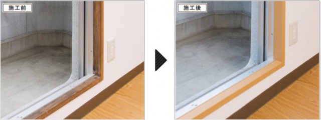 全面接着処理されたフィルムによって各部位の色褪せや傷、汚れを覆うことで、解体や取替えをせずに短期にリフォーム工事ができる。