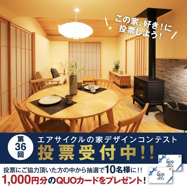 フクビ化学工業(福井市)がネットワーク展開しているフクビエアサイクルチェーン本部では、全国のエアサイクル工務店が手掛けた実例作品から、最も優れた作品を選出する「エアサイクルの家」デザインコンテストの投票をホームページで受け付けている。