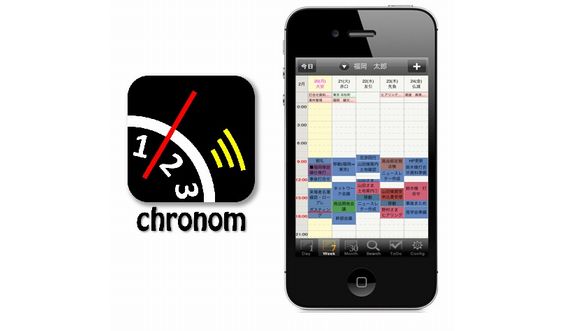 「chronom」は、「リレーションマネージャー」の主だった機能であるカレンダー機能をスマートフォンで簡単に利用できるように開発されており、スケジュールをPC版と自動同期することができる。スケジュール共有も可能で、外出先で社内の予定を閲覧・更新できる。