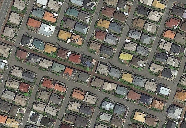 ↑バブル当時の高級分譲住宅の屋根は形も色も様々で空から見ても分かっちゃいます。