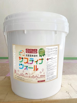 サスティナウォールは、アクリル系のバインダーに、珪藻土と潜熱蓄熱材を混入した塗料だ。潜熱蓄熱材は、23℃を境に熱を吸収、または放出する性質を持っている。