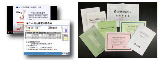 耐震診断編50分、補強設計編は90分超の内容を動画でまとめた。現地調査の書き方マニュアルや耐震診断書・耐震補強設計書のサンプルなどを元に解説