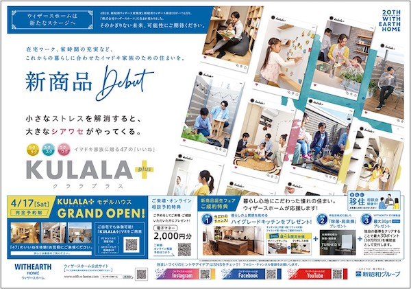 新昭和グループのウィザースホーム(千葉市)は、在宅ワークやおうち時間の増加に対応するコンセプト商品「KULALA+(クララプラス)」の販売を4月17日に開始する。