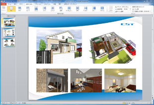 新機能では、同システムで作成したパースや平・立面図データをPowerPoint形式のデータ保存が可能。これにより、PowerPointでのプレゼンシートの細かい編集作業や、アニメーション効果、スライドショーの動画保存等の汎用的な活用ができるようになったほか、iPadやAndroidタブレットへのデータ連携も容易となった。