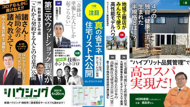 そのほか7面では「省エネ性能説明義務制度」について、前号(4月10日)に続き、工務店の対応や制度に対する考えを聞いています。編集部記者の荒井隆大と峰田慎二が、岡庭建設(東京都西東京市)、天野保建築(山梨県富士吉田市)、髙橋建築(埼玉県秩父市)に取材しました。【栁原潤】