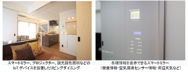 実証実験では、食事や体重、体温などの情報に応じた運動や食事レシピのアドバイスや、くつろぎ・在宅ワークなどのシーンに合わせた照明、音楽、プロジェクター映像などで雰囲気を変化させるサービスなどを提供。居住者のニーズの変化や多様性に対応できるかを検証していく。