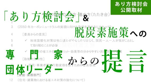 国土交通・経済産業・環境の3省は、合同で「脱炭素社会に向けた住宅・建築物の省エネ対策等のあり方検討会」(あり方検討会)を開き、2030年、50年の温暖化ガス削減目標の達成に向け、住宅・建築物の省エネ化を議論している。