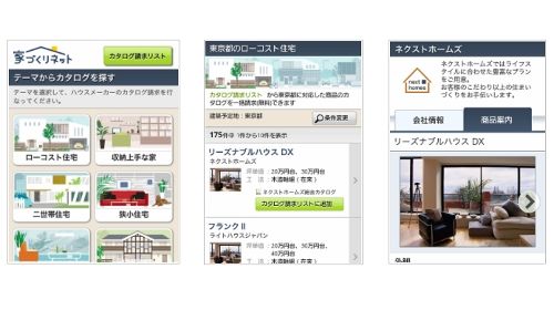 ネクスト(東京都港区)は、全国のハウスメーカーから注文住宅カタログを一括請求できる「家づくりネット」に、スマートフォン向けサイトをこのほど開設した。