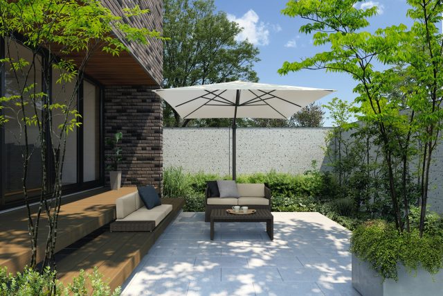 アイテムはすべて、日本の庭の広さや同社のアウトドアリビング商品との組み合わせを考慮したコンパクトサイズとし、人工木デッキ「ひとと木2」、ガーデンフロア「ラステラ」、ガーデンルーム「ハピーナリラ」などとのトータル提案が可能という。