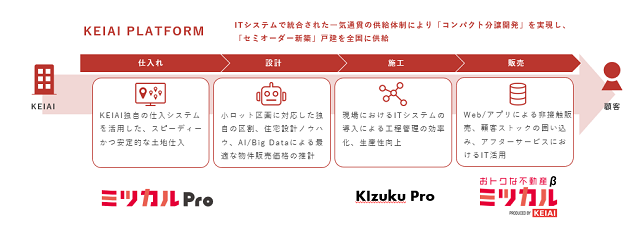同社は2017年に「不動産×IT」の指針を制定。2019年には「IT成長戦略ReTech 5本の矢」を制定し、ビジネスフローの強化やグループ会社・フランチャイズ加盟店へのIT施策を展開してきた。主力の分譲住宅事業では、「ミツカルPro」など独自のITシステムで仕入れから販売まで統合した「KEIAIプラットフォーム」により、生産性向上を実現している。