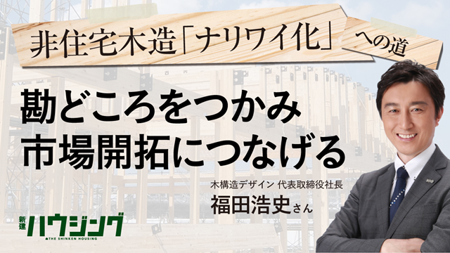 今号スタートの非住宅・中大規模木造に特化した構造設計を手掛ける木構造デザイン代表の福田浩史さんによる連載で、設計や施工の勘どころから集客・営業手法まで解説しながら、工務店による非住宅木造の“ナリワイ化” への道筋を示す。毎月10日号に掲載。