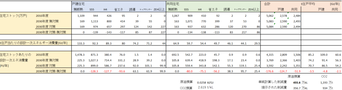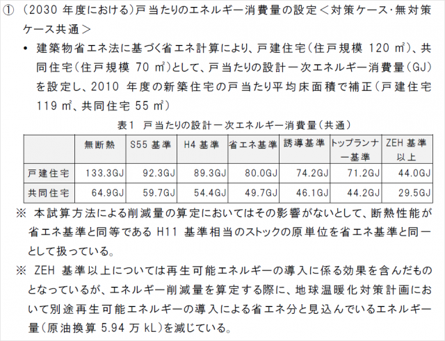再エネの効果がとても大きいことがわかったため、省エネ基準の適合義務化よりも、再エネの自家消費による省エネ効果を加味して、ZEH比率を高める方向に、政策が抜本的に転換したのである。